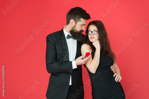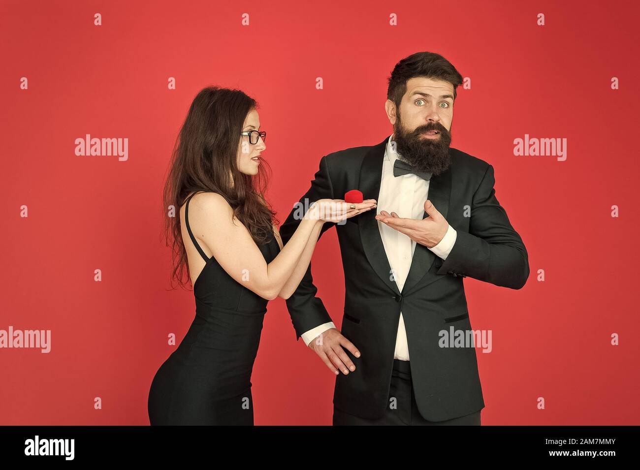 Engagement Concept Romantic Gift Box Jewelry Engagement Marriage Proposal Handsome Man And Elegant Woman In Love Romantic Engagement Rejected