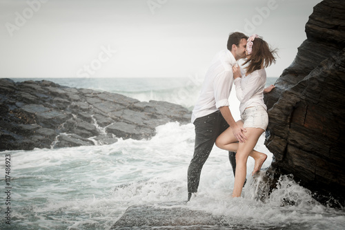 Romance Engagement Couple Love Beach Ocean Stock Photo Edit