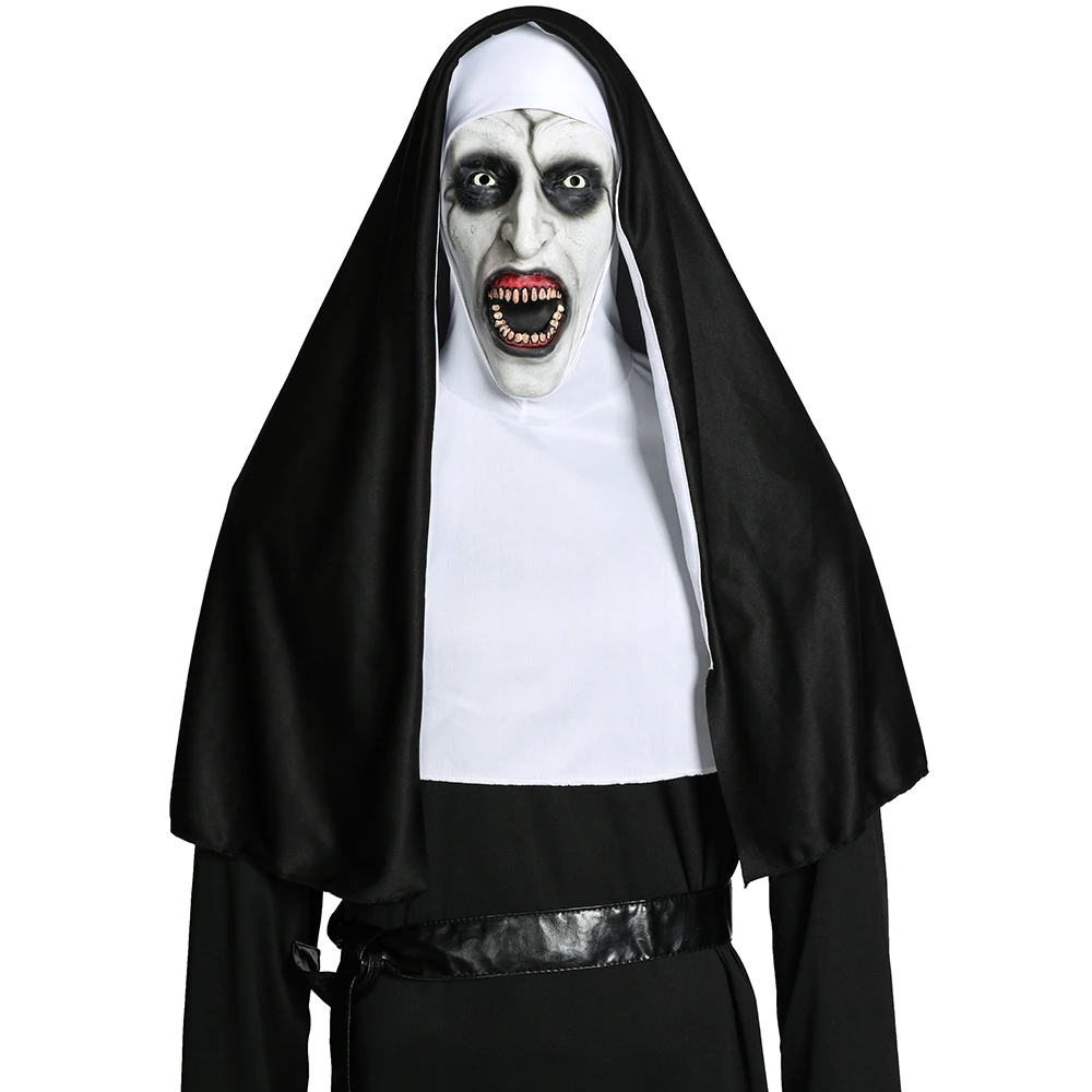Us 198 56 Offthe Nun Horror Cosplay Mask With Costume Valak Virgin Latex Masks Adult Deluxe Clothing Halloween Party Costumes Dropshipping In