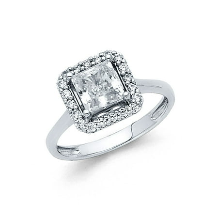Fancy Princess Square Halo Cz 14k White Solid Italian Gold Bridal Proposal Wedding Infinity Engagement Ring Size 7 Available All Sizes
