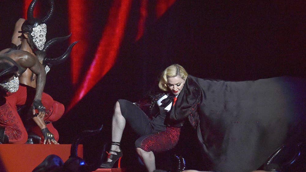 Madonna Dramatically Falls Backwards Off Stage To End Epic