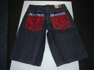 Coogi Mens Black Denim Jean Shorts With Red Tree Coogi Design On