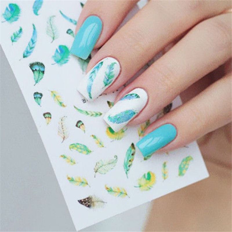 Details About 2 Sheets Nail Stickers Feather Design Decal Nail Art Manicure Tips 3d Uk