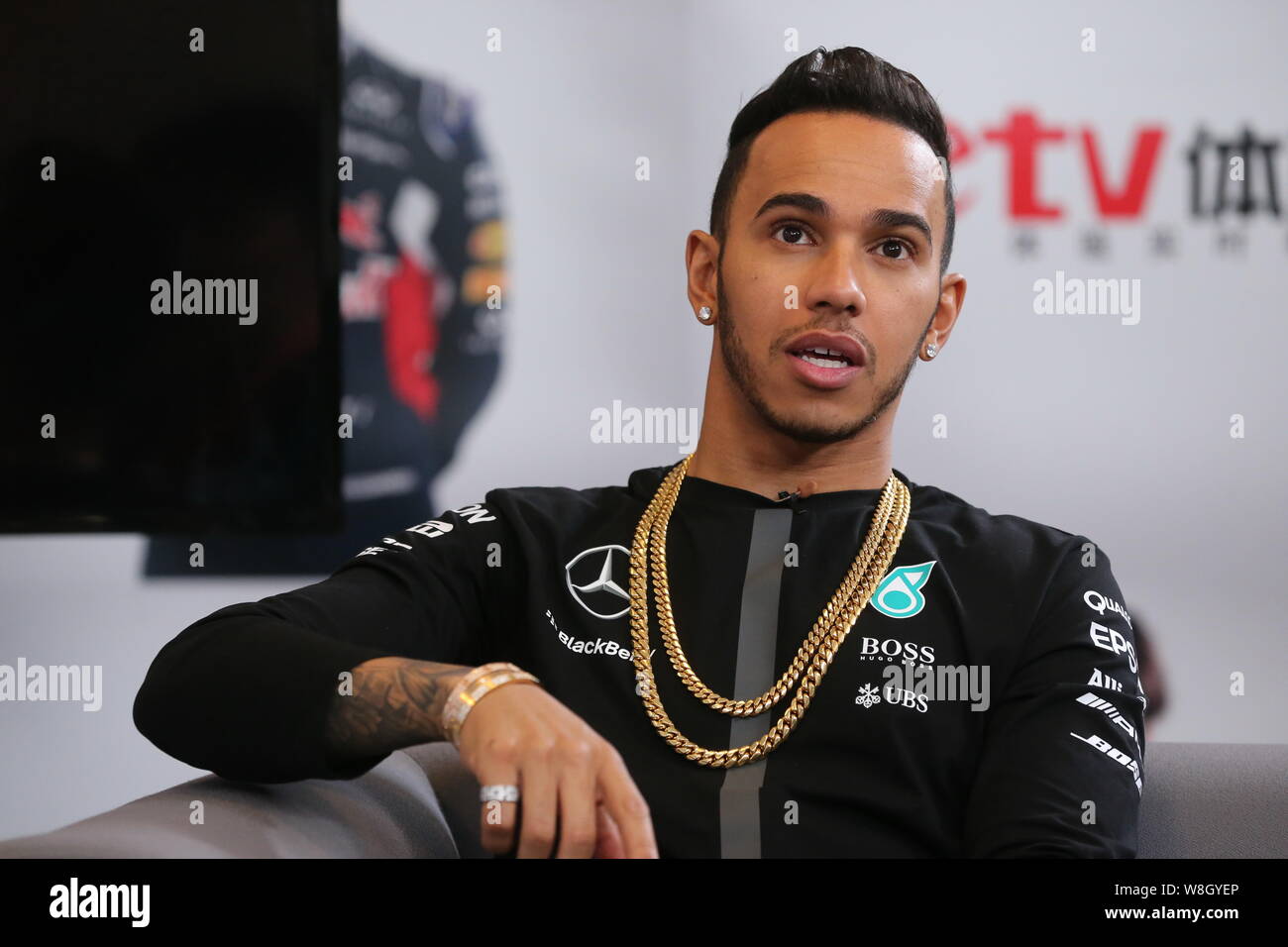 British F1 Driver Lewis Hamilton Of Mercedes Amg Attends An