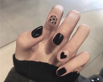 24pcs Sweety Solid Black White Decorated Short Square Full Cover